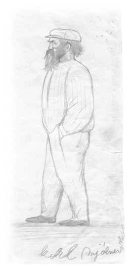 viser «Karl Mjølnerstuen» - i strek av Jørgen Slaastadsæteren.